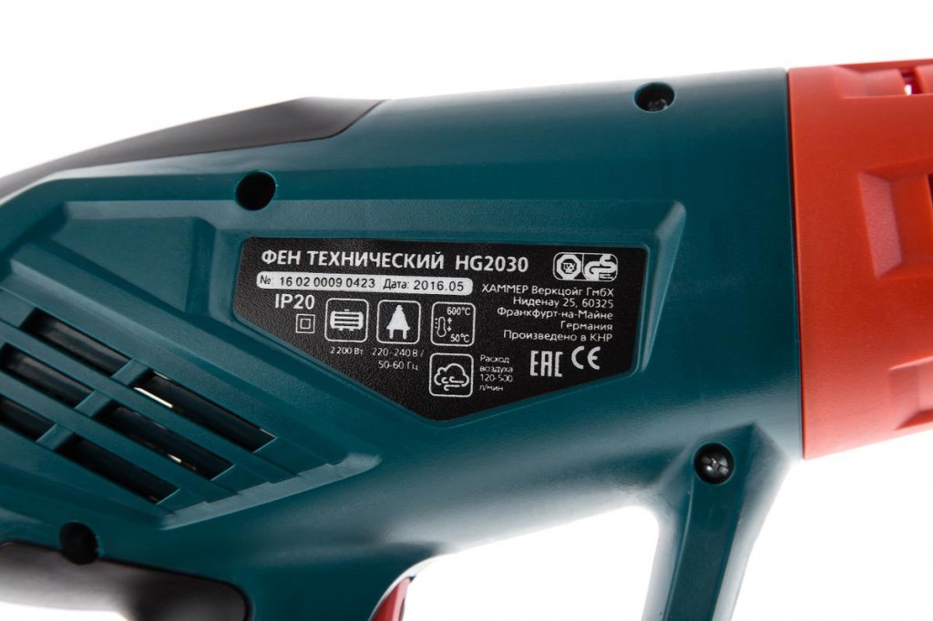 Главная страница » Каталог товаров » Электроинструмент HAMMER PREMIUM » Фен техн. HAMMER HG2030 PREMIUM 2200Вт 50/50-600С 250-500л/мин кейс, насадки, тепл.защита