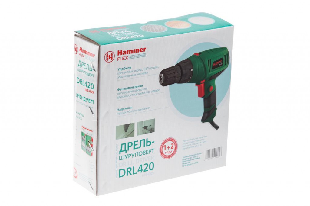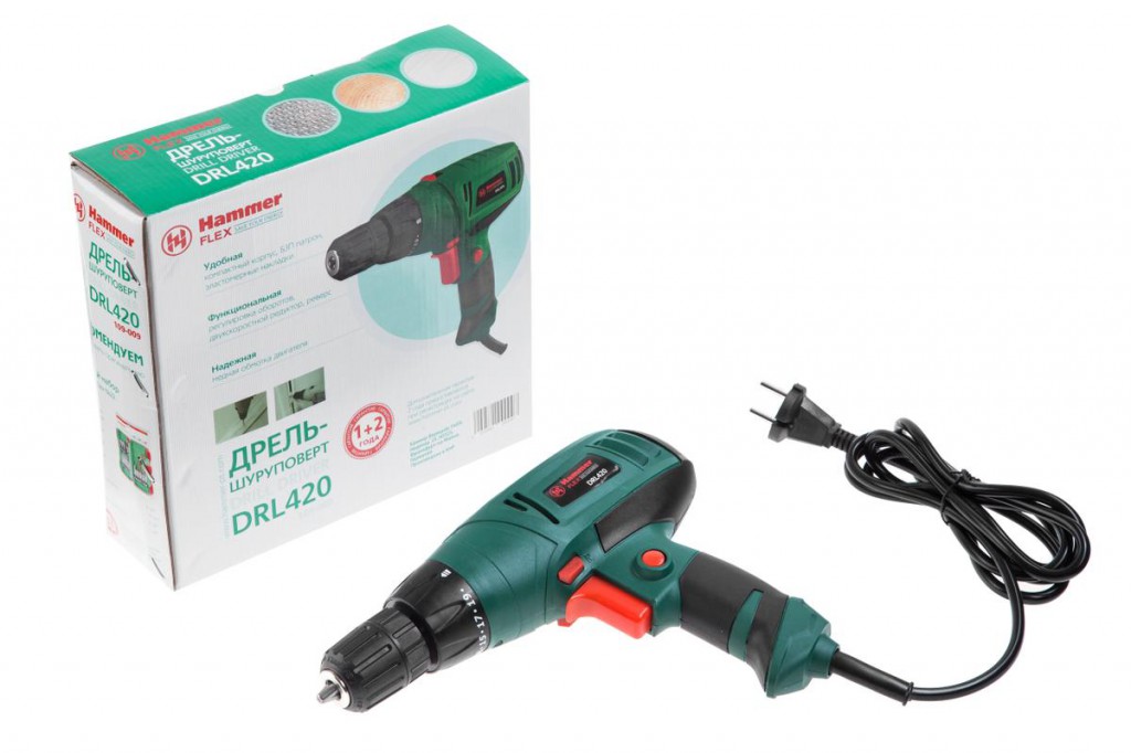 Дрель-шуруповерт Hammer Flex DRL420 280Вт 10мм 0-350/0-1100 об/мин реверс 29Нм